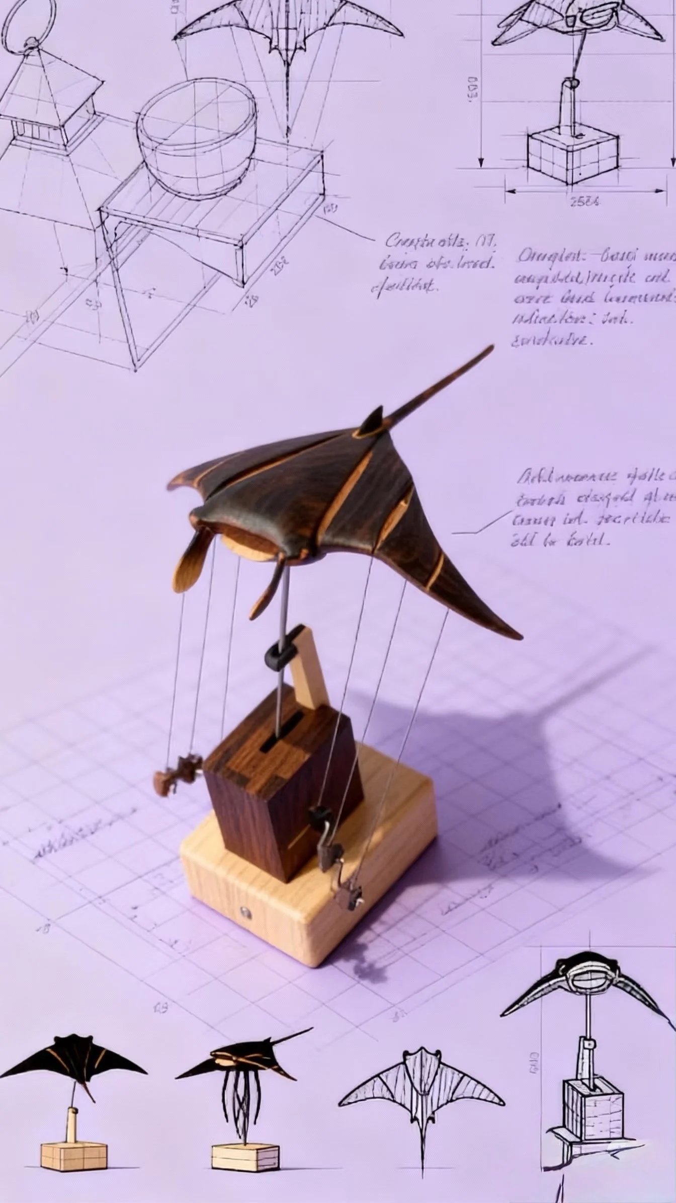 Handcrafted Walnut Manta Ray Automaton – The Ocean’s Silent Glider🎁Buy 2 Free Shipping✈️